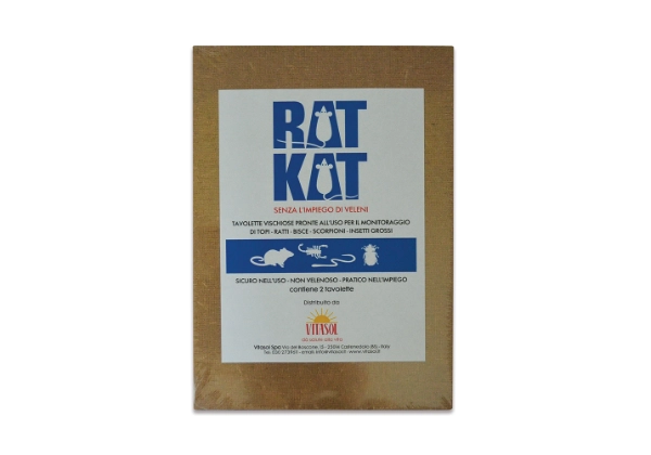 Rat Kat 50 è un sistema di cattura pronto all’uso costituito da tavolette altamente vischiose, progettato per il monitoraggio e il controllo di topi, ratti e insetti di grosse dimensioni. Operando in totale assenza di veleni o sostanze tossiche, rappresenta la scelta ideale per ambienti sensibili (industrie alimentari, magazzini, abitazioni) dove l’uso di esche rodenticide è limitato o sconsigliato. La colla a forte presa garantisce l’immobilizzazione immediata dell’infestante, assicurando un monitoraggio preciso della popolazione di roditori.