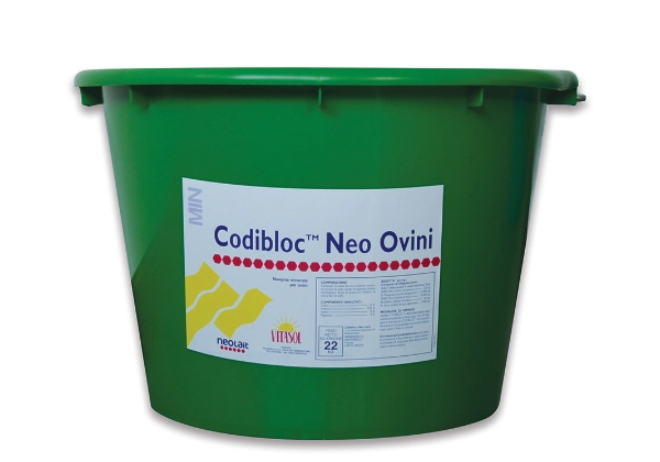 Il CODIBLOC NEO OVINI (PB019220) è la soluzione professionale per l'integrazione minerale "self-service" negli allevamenti ovini. La sua formulazione è stata calibrata tenendo conto della particolare sensibilità degli ovini ai metalli pesanti e delle loro specifiche necessità metaboliche legate alla produzione di latte, lana e alla riproduzione.