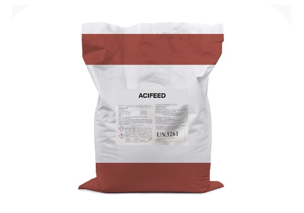 Sanificazione della Raziona: Se miscelato nel mangime, Acifeed agisce neutralizzando eventuali cariche microbiche derivanti da terra o foraggi poco puliti, garantendo una sanificazione profonda dell'alimento.